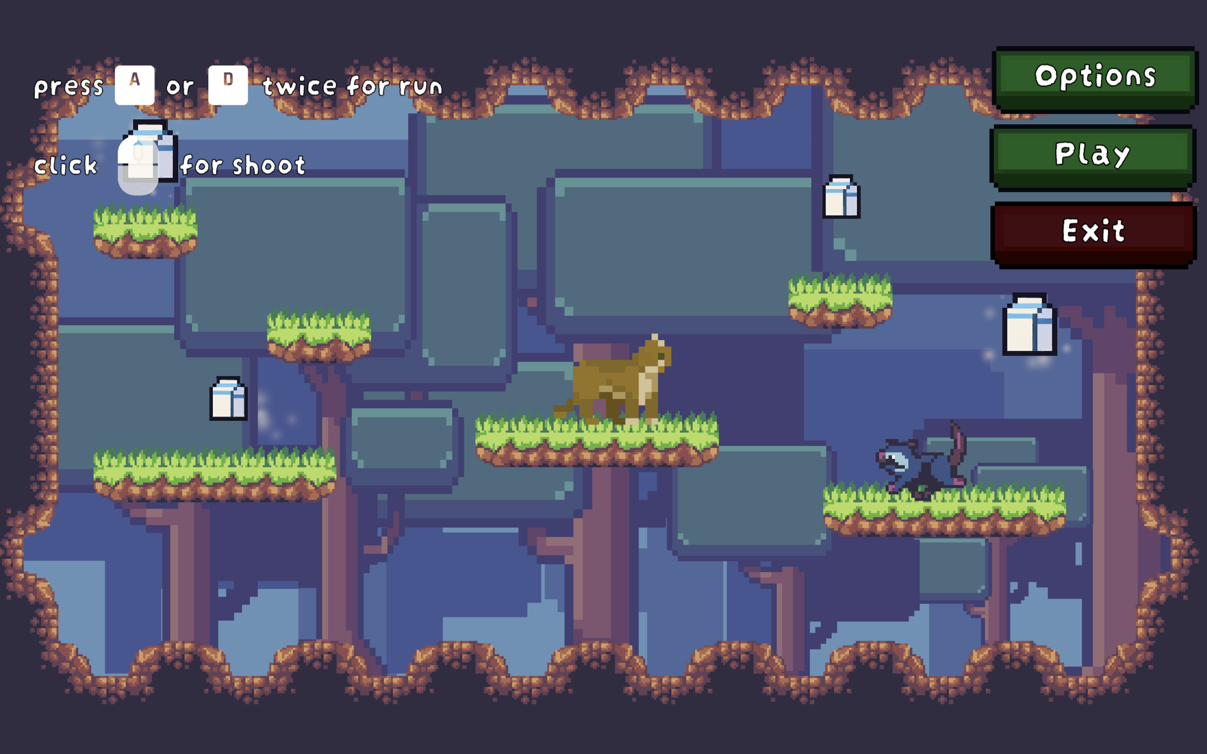 Play as a cute cat with dash, shoot, and collect mechanics.